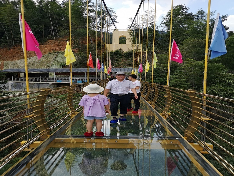 玻璃橋上(shàng)膽子大(dà)的已經走過去了,膽小(xiǎo)的同志(zhì)們還(hái)在戰戰兢兢