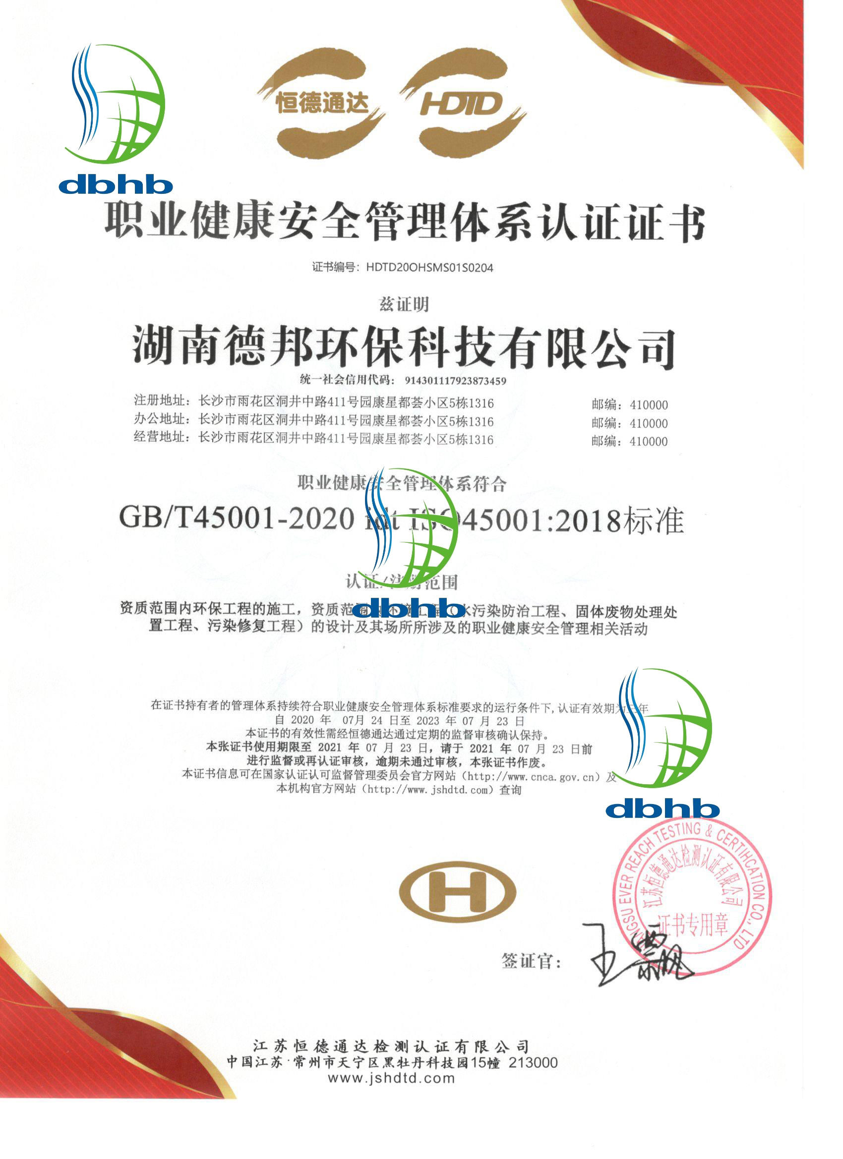 職業健康安全管理(lǐ)體(tǐ)系認證證書(shū)