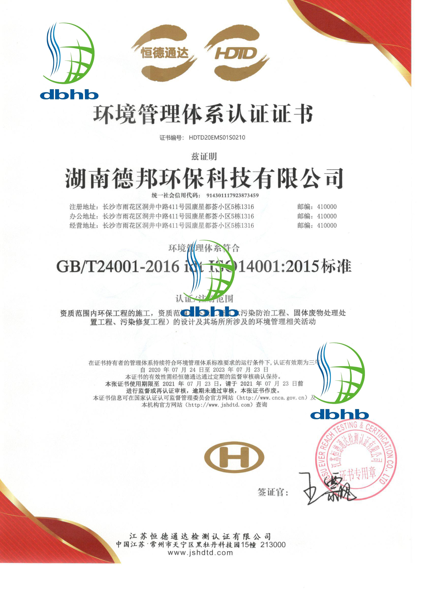 環境管理(lǐ)體(tǐ)系認證證書(shū)